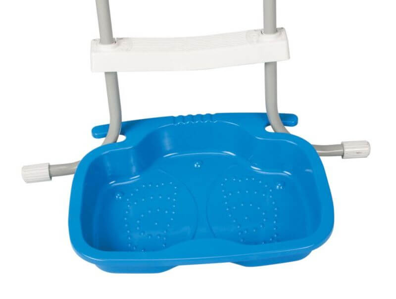 - Для удобства ополаскивания ног перед входом бассейн ванночка легко крепится к основанию лестниц